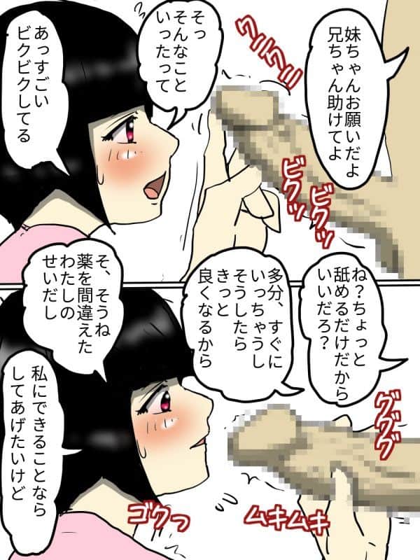 人妻で子持ちの妹から風邪薬と間違えて妹旦那の性欲強壮剤を飲まされた兄が、実の妹に欲情し快楽堕ちさせるまでを描いた兄妹近親相姦マンガです。
